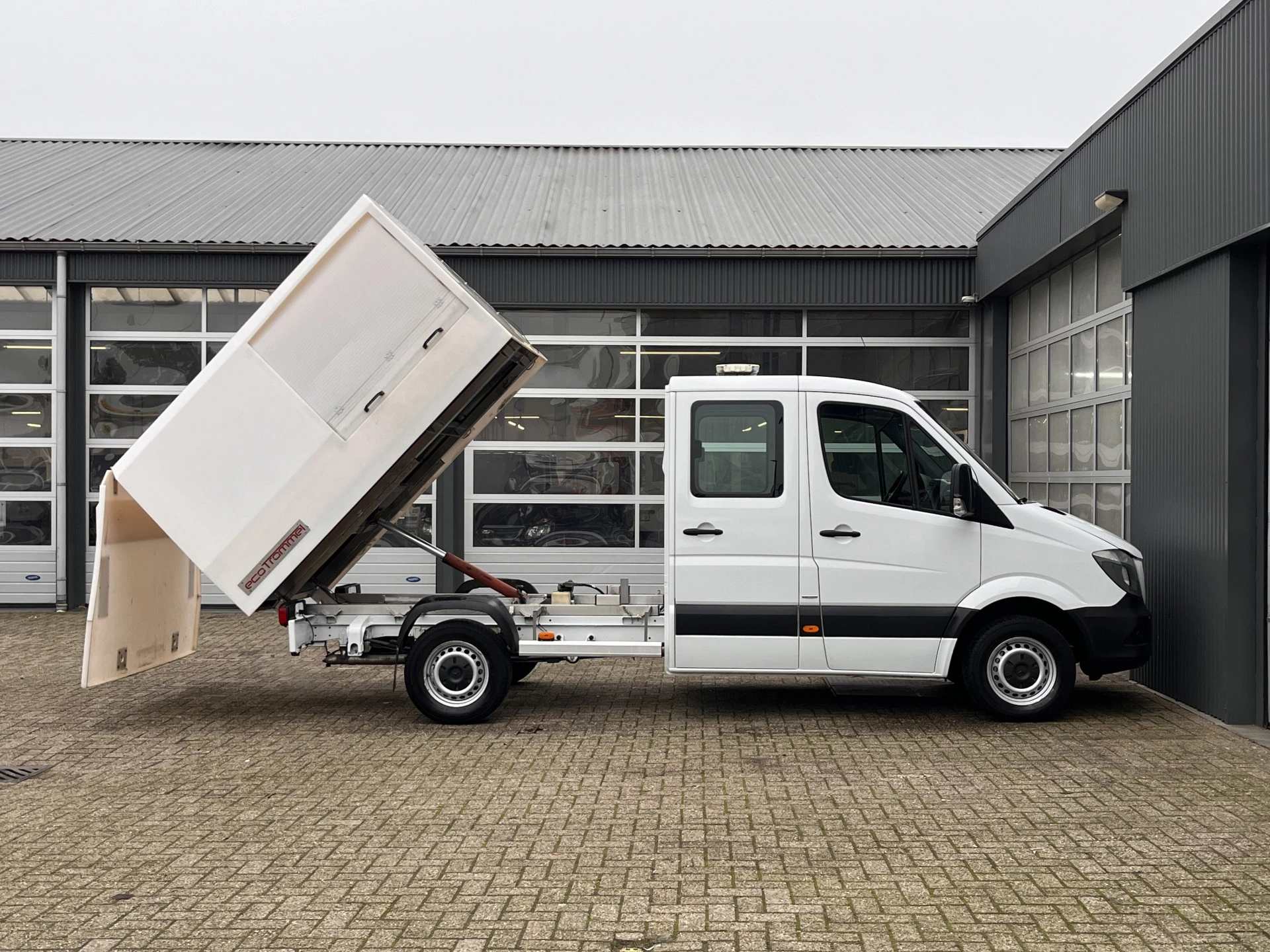 Een zeer nette Mercedes Sprinter 2.2CDI 115pk 366 Automaat Dubbele cabine Veegvuilkipper Kipper met Airco Navigatiesysteem Telefoonverbinding 7-Persoons uitvoering 1e eigenaar ex overheid open laadbak Pick-up Kieper Euro 6 Vuilniswagen Snipperwagen